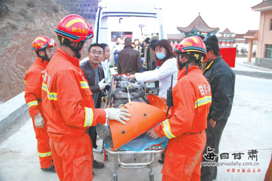 施救现场。兰州晨报通讯员程强 摄 每日甘肃网1月10日讯 (兰州晨报首席记者姚智 通讯员程强)1月8日下午5时许,白银市消防支队119指挥中心突接群众报警称,一女生与伙伴在靖远乌兰山后山玩耍时,不慎失足跌入山涧已近昏迷,急需救援。接到报警后,靖远消防中队随即派出消防救援人员赶赴现场。在救援用无人机的协同下,被困女生成功获救。 1月9日,记者采访中了解到,当天下午5时36分,闻讯出警的消防救援人员赶到位于靖远县殡仪馆旁的乌兰山下后,立即释放无人机对女孩所在区域进行空中侦查,发现女生位于山腰处的一个山涧底部,山涧两侧山体陡峭,山坡与地面夹角超过80度。女生的几个小伙伴在事发后,涉险滑入山涧陪在女生身边,并不停地呼唤着女生帮助她保持清醒。根据现场情况,现场消防指挥员立即带领几名经验丰富的战士携带安全绳、安全腰带、多功能担架等救援器材,攀爬到女生身边,将已近昏迷的女生固定在多功能担架内后,五名消防救援人员通力合作,最终于当晚6时20分,将被困女生安全送上了等候已久的120急救车。目前,女生尚在医院接受治疗。