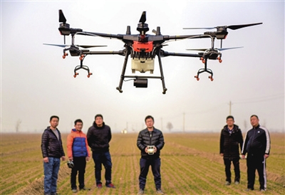 2月25日,无人机教员(右三)在衡水市冀州区徐庄乡北榆林村为村民做飞行示范。 春耕将至,河北省衡水市冀州区无人机培训学校通过田间实践、现场指导等方式,加紧对学员进行植保无人机操作技能培训,帮助他们通过考试取得驾驶执照,助力即将到来的春耕春种。来源:黔南日报