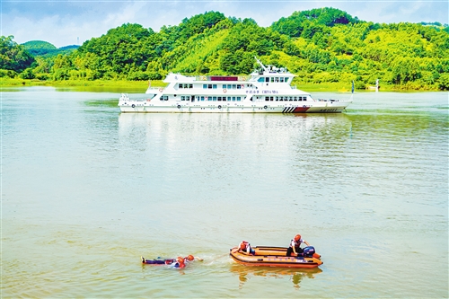 8月27日,南宁市水上搜救中心举行2019年水上应急新装备展示暨演练活动。图为在演练现场,相关工作人员利用无人机锁定“落水者”位置,救援组对“落水者”实施营救。 南宁日报记者叶子榕 摄 8月27日,南宁市水上搜救中心举行2019年水上应急新装备展示暨演练活动。 “横县六景水上搜救基地附近水域两船发生碰撞,4人落水,一艘船只翻沉,情况紧急,请求立即救援。”演练中,南宁市水上搜救中心值班室接警后立即启动应急响应,协调搜救基地救援人员携带应急新装备急速前往救援。救援组操控无人机在江面快速锁定救援目标,水上救援机器人拖带落水人员返回岸边,借助多功能救生杆将3名落水人员成功救起。随后,救援组继续使用测扫声呐及水下机器人对沉船及失踪人员开展水下搜寻。 据悉,演练中使用的设备为南宁市目前最先进的水上搜救设备,极大地提升了南宁辖区水上应急搜救能力。 本次演练由南宁海事局联合南宁市红十字会组织承办,2艘海巡船舶、3艘橡皮艇、33人参演。活动分为险情现场信息采集、遇险人员水上救助、遇险人员水下搜寻和遇险人员水下打捞4个科目,各科目演练有序开展,参演人员全方位展示遥控水上救援机器人、测扫声呐、水下机器人等新型水上搜救装备,圆满完成救援,既展示了新型设备的风采,也充分检验了搜救人员熟练运用设备的应急搜救能力。(记者王志鹏 通讯员 姚铧峰 潘茵茵)
