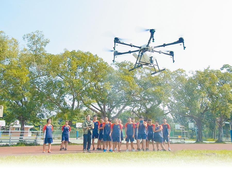 北港农工推广科技农业,24日开办「植物保护作业无人驾驶飞机操作研习」课程,教导农科学生操作植保无人机喷洒农药,让新兴科技与农业结合,以更具效率、更省人力、更安全的方式处理田间工作。 北港农工配合国家政策,投入「奖励高中从农方案」与「新农民培育计画」,培育具备先进科技能力的农业人才,24日聘请植保无人机老师到校授课,先在操场上进行无人机操作示范,再到教室讲解无人机法规与应用。 无人机老师吴俊毅表示,无人机是目前最夯的新兴科技,可应用在各个行业,农业方面主要是应用于喷洒农药的植物保护作业,以及进行大面积的农业影像分析,藉由智慧农业的辅助,将大幅减少农业人力的需求。 吴俊毅说,此次教学的植保无人机为6轴机,配有6个喷嘴,可承载16公升药剂,以每秒3至5公尺速度在农田或果园上方飞行,15分钟即可喷洒6至7分地,喷洒费用与人工差不多。 无人机的优势在于不受地形限制,例如水稻、芋头等水生农作物,若用人工喷药必需踩在泥泞土壤里,无人机则可凌空轻松作业;应用于山坡地,不需人工爬上爬下耗工费时,且可避免作业人员吸入农药。 北港农工校长廖宏莹指出,透过无人机研习课程,可让学生学到以安全、有效率的方式处理大面积农药喷洒,认识新兴科技于农业经营上的运用,了解从农不再是孤军奋战,因为新兴科技将为严重缺工的农业环境带来巨大的支援。(中国时报)