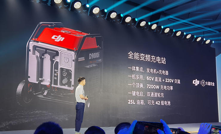 陈韬在发布会上介绍称,这种雷达扫描效果,在武装直升机阿帕奇上也有用,农户买一台T30四舍五入相当于买了一架阿帕奇。 T30还搭载了双FPV摄像头,飞行时飞手可从屏幕上轻松掌握飞机所处场景,飞行更安心。同时,摄像头像元面积增加3倍,结合高亮探照灯,夜间作业更放心。 为了减少转场配套数量,简化操作降低作业成本,大疆农业本次发布了包括智能电池、全能充电站、智能充电器等一站式解决方案。 保内循环次数高达1000次的新款智能电池,采用性能更高的化学体系,实现了落地即充,无需冷却。配套的全能充电站,既是发电机又是充电器,7200W大功率实现10分钟超快充,再搭配2块电池,用户就可以连续作业,大大减少户外作业携带装备数量,降低作业成本。