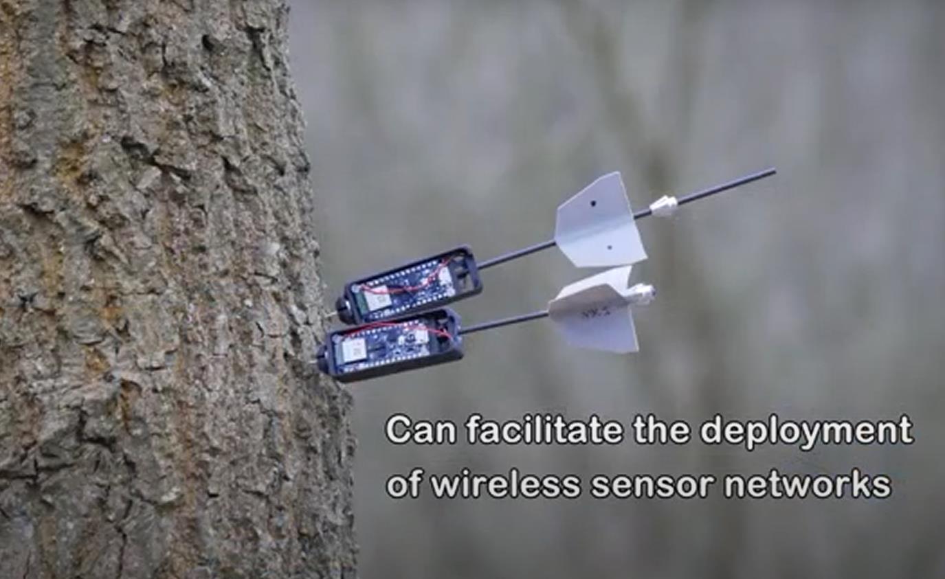 [环球网无人机报道 记者 赵汗青]国外Electropages网站11月15日消息,最近,英国的帝国理工学院的研究人员开发出一种可以精确地射出飞镖的无人机,飞镖上集成多种传感器,用于远程环境监测。 据介绍,这款无人机目前还要由人工控制,其搭载的发射机构采用弹簧储能,释放机构则采用特殊的形状记忆合金。释放机构通电后会变形从而释放主弹簧,一个30克重的飞镖会被射到4米远,准确度高达90%。另外有些测试显示准确度达100%,但应该是在1米的距离。这款无人机一次充电可射击17次。 飞镖本身集成了传感器,以创建用于环境远程监控的无线传感器网络(WSN)。根据研究人员称,飞镖比其他技术更能精确定位传感器。而其它技术,如投掷放置或胶粘则不那么可靠。飞镖还使传感器远离地面,进而避免被洪水、动植物等破坏。无人机的使用也让研究人员避免了爬树的危险,其还可飞进有马蜂窝等危险因素的区域。