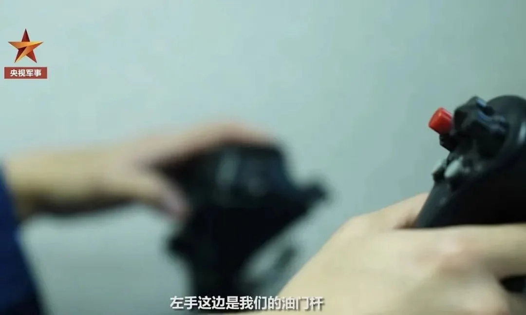 这是地面方舱 。 据空军航空兵某团飞行员李子煜介绍:右手是我们的驾驶杆,控制飞机的俯俯仰和滚转;左手是油门杆,控制飞机的速度;下面是脚蹬,控制飞机的偏转,以及在地面滑行时飞机的方向。平常我们飞机分为自主、半自主和人工驾驶模式。