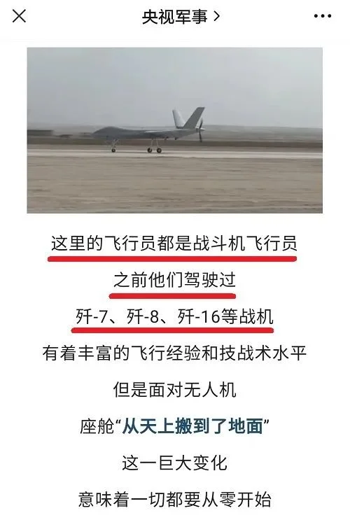 央视军事近日报道了空军无人机种子部队——空军察打一体无人机部队,而在报道中,透露出了一个重要的信息,就是歼-16飞行员改飞无人机。 央视军事报道称,空军察打一体无人机部队的飞行员都是战斗机飞行员,之前他们驾驶过歼-7、歼-8、歼-16等战机,有着丰富的飞行经验和技战术水平,但是面对无人机座舱“从天上搬到了地面” 这一巨大变化,意味着一切都要从零开始。